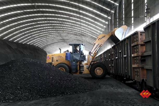 图为列车正在装运煤炭